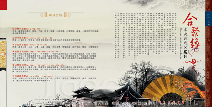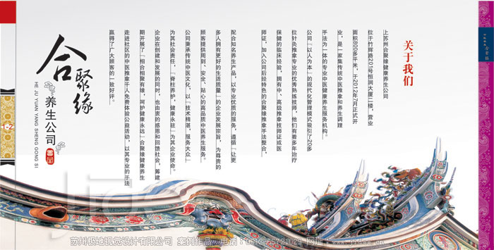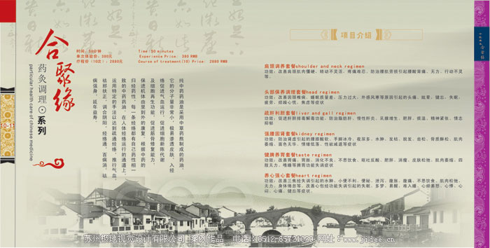 客戶名稱:蘇州合聚緣健康養(yǎng)生公司 行業(yè)類別:美容養(yǎng)生 項(xiàng)目分類:畫冊設(shè)計(jì)|企業(yè)畫冊設(shè)計(jì)|產(chǎn)品畫冊設(shè)計(jì)|宣傳冊設(shè)計(jì) 項(xiàng)目介紹: 蘇州合聚緣健康養(yǎng)生公司位于竹輝路201號(hào)恒潤大廈二樓,營業(yè)面積800多平米,于2012年8月正式開業(yè),是一家集傳統(tǒng)中醫(yī)推拿和養(yǎng)生調(diào)理手法為一體的專業(yè)中醫(yī)健康養(yǎng)生服務(wù)機(jī)構(gòu)。公司“以人為本”的現(xiàn)代化管理模式吸引了20多位針灸推拿專業(yè)的優(yōu)秀熟練技師,他們有著多年治療保健的臨床經(jīng)驗(yàn)…