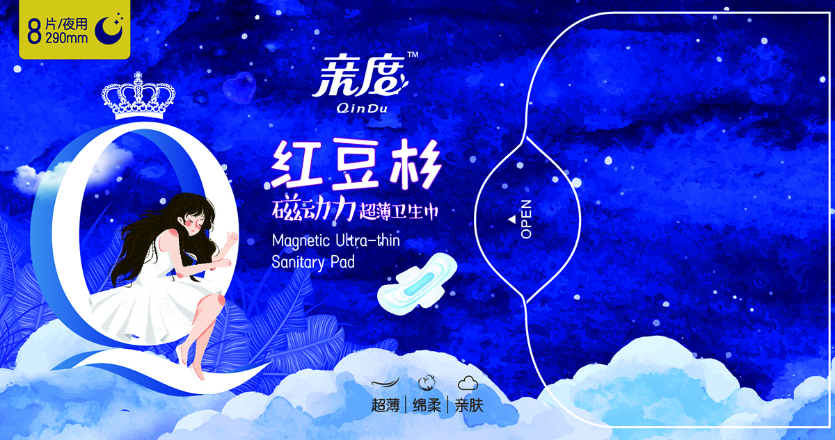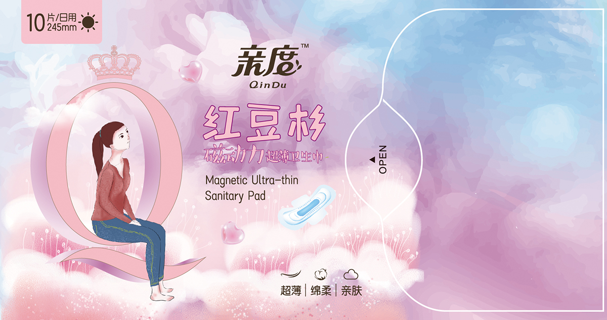項(xiàng)目背景:親度紅豆杉磁動(dòng)力超薄衛(wèi)生巾,以每少女的卡通形象為主題的設(shè)計(jì)風(fēng)格和個(gè)性,在與同類(lèi)競(jìng)品競(jìng)爭(zhēng)中脫穎而出。對(duì)于中國(guó)女孩來(lái)說(shuō),衛(wèi)生巾仍然是一個(gè)尷尬而私密的話題。因此,在衛(wèi)生護(hù)墊市場(chǎng)上,“口袋大小的包裝”的概念應(yīng)運(yùn)而生,并因其時(shí)尚的外觀和超輕便的設(shè)計(jì)而廣受歡迎。特點(diǎn):超薄 綿柔 親膚