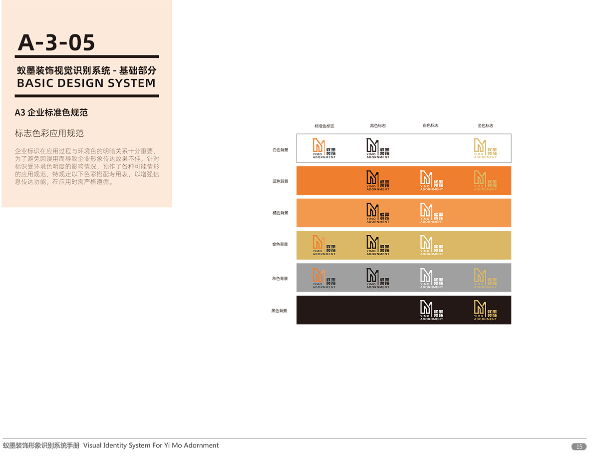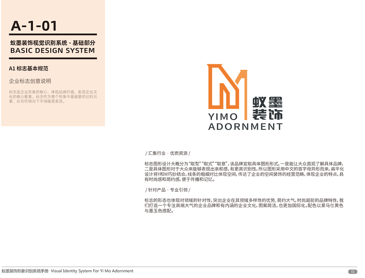 品牌介紹 :蘇州蟻墨裝飾工程有限公司經(jīng)營范圍包括室內(nèi)外裝飾裝潢工程、建筑工程、幕墻工程、園林綠化工程、樓宇智能化工程的設(shè)計(jì)與施工;管道、門窗、水電安裝;銷售:建筑材料、金屬材料、五金交電。LOGO設(shè)計(jì),選用“YIMO”的首字母“Y,M”進(jìn)行圖形創(chuàng)意,設(shè)計(jì)簡潔、配色以愛馬仕黃色與墨玉色搭配,偏平話設(shè)計(jì)講字母巧妙的組合在一起,通過線條的粗細(xì)突出層次感和空間感,傳達(dá)了企業(yè)的空間裝飾理念,易于傳播與記憶。