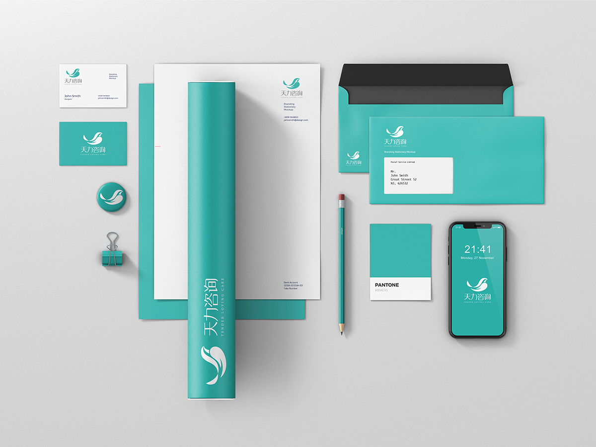 天力咨詢logo以標志以飛鳥與手為靈感,同構圖形拼搭具有設計感,以此來延伸設計。“飛鳥”代表我們奮斗的目標和高度;“手”代表我們友好的態(tài)度和親切的關懷;藍綠色的logo代表我們做事的態(tài)度和心態(tài),與“天”的屬性相契合。整個logo切合“天力”的理念:自由飛翔的從容,發(fā)自內心的關懷,由淺入深,精益求精,追求卓越!Logo顏色以藍綠色為主調,沉穩(wěn)與輕靈并重,代表了企業(yè)高尚、端莊、充滿個性的工作品質。