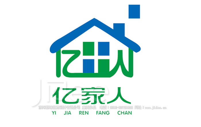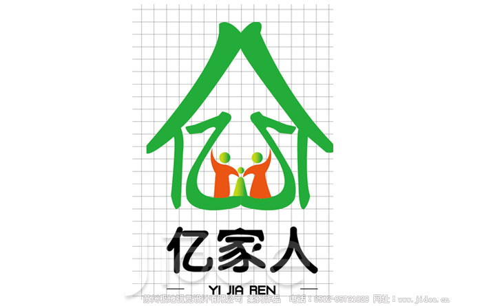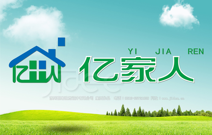 設計思路:突出“億家人”房產公司為億萬家房產服務理念,取“億”的“   ”變形成為房子邊墻和屋頂。