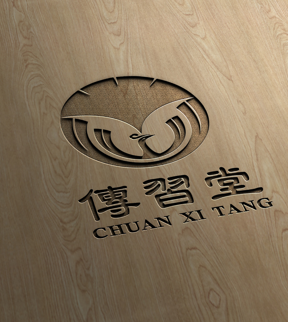 傳習(xí)堂考慮到此款藥店logo設(shè)計是藥房門店使用寓意一定要好,圖案上半部分為銀杏葉代表健康長壽,銀杏的壽命很長寓意長命百歲,壽比南山之意,同時銀杏為愛心造型,寓意多子多福,圖案下半部分為火鳳凰,寓意鳳凰涅磐,欲火重生,寓意重生代表新生、積極、向上的正能力,綠色的銀杏葉和紅色火鳳凰視覺沖擊力強。