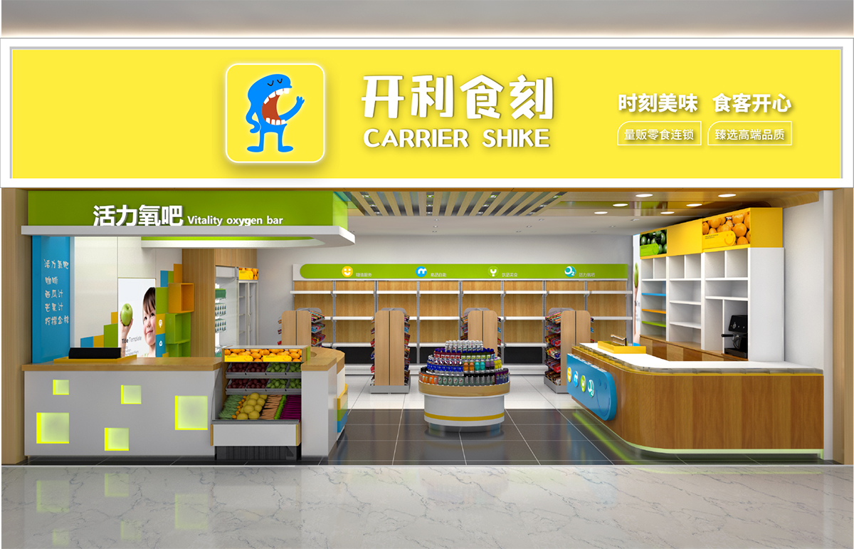 開利時刻便利店品牌logo設計-開開心心美味時刻,舌尖上的商機,引領零食發展新風尚,嚴控品質安全健康,地域特色 發揮極致,價格實惠 性價比高,各色各樣 應有盡有,