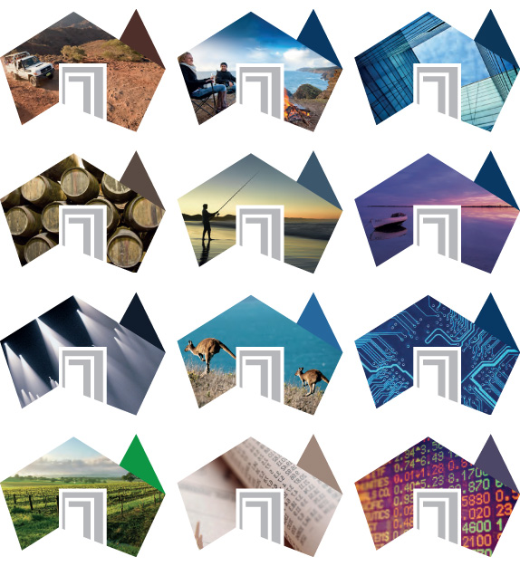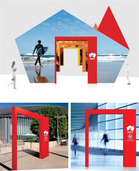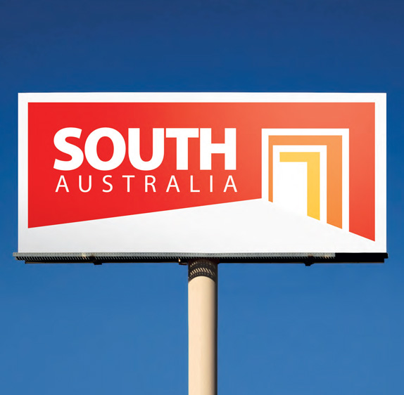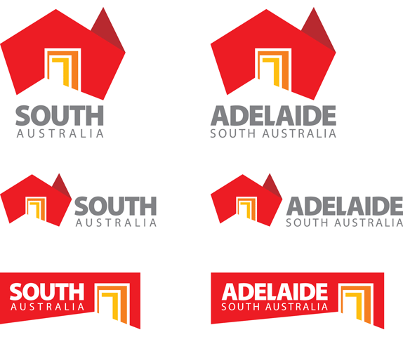 新Logo由澳大利亞地圖的形狀衍生而成,紅色澳洲地圖圖標(biāo)上的敞開調(diào)黃色門的位置正好展現(xiàn)了南澳州是整個國家的中心門口的位置。這是一個多形態(tài)的標(biāo)識,它可以應(yīng)用于各種的形式,由不同圖案的窗口變成了另一圖形的門。