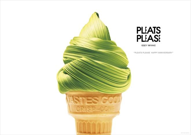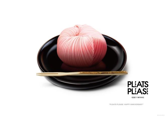 三宅一生Pleats Please (三宅褶皺)慶祝品牌20周年紀(jì)念的創(chuàng)意廣告,請到日本平面設(shè)計大師佐藤卓Taku Satoh以「PLEATS PLEASE BAKERY烘焙坊」為主題,設(shè)計出一系列有趣的形象廣告。