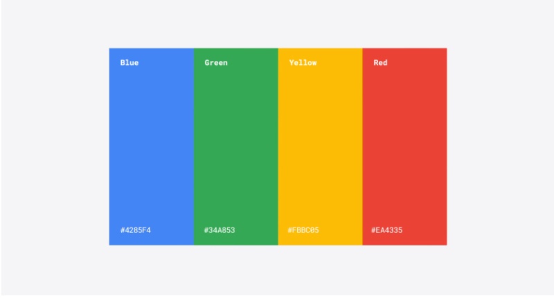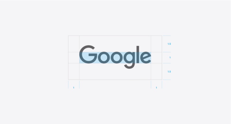 Google Logo從字母間的間距得益,但是當顏色是相鄰的——比如Google G——他們光學上混合,間距可能導致現有的色彩變深變暗,所以我們去掉了紅黃綠藍色彩之間的間距,來保留原有色彩的飽和度和活力。