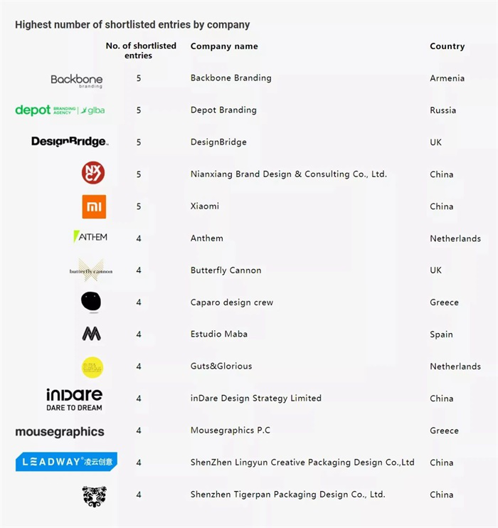 Pentawards是全球首個也是唯一的專注于各種包裝設計的競賽,素有包裝設計界奧斯卡之稱。自2007年創辦起,每年Pentawards競賽皆會聘請12位在全球頗具盛名的設計師,以及知名公司的包裝設計總監,組成專業的評審團隊,一同評比來自世界各地的包裝設計作品。Pentawards在9月24日星期四舉行了首度的線上頒獎典禮,揭曉了本年度獲得Pentawards殊榮的獲獎者。獲得最多獎項的公司包括Backbone Branding、Design Bridge個別獲得了5個Awards,潘虎包裝設計實驗室、深圳凌云創意包裝、Depot Branding Agency、小米、Estudio Maba 以及 Anthem, 等公司皆獲得了4個獎項。