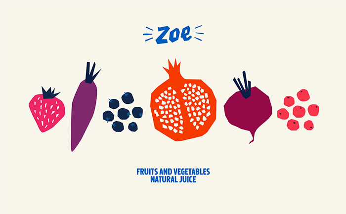 這款果汁包裝設計采用了剪紙效果的圖案設計,搭配拼貼的方式呈現,插畫以水果形狀的色塊表現為主,沒有了線條的約束,顯得更獨特活力。將各種水果元素