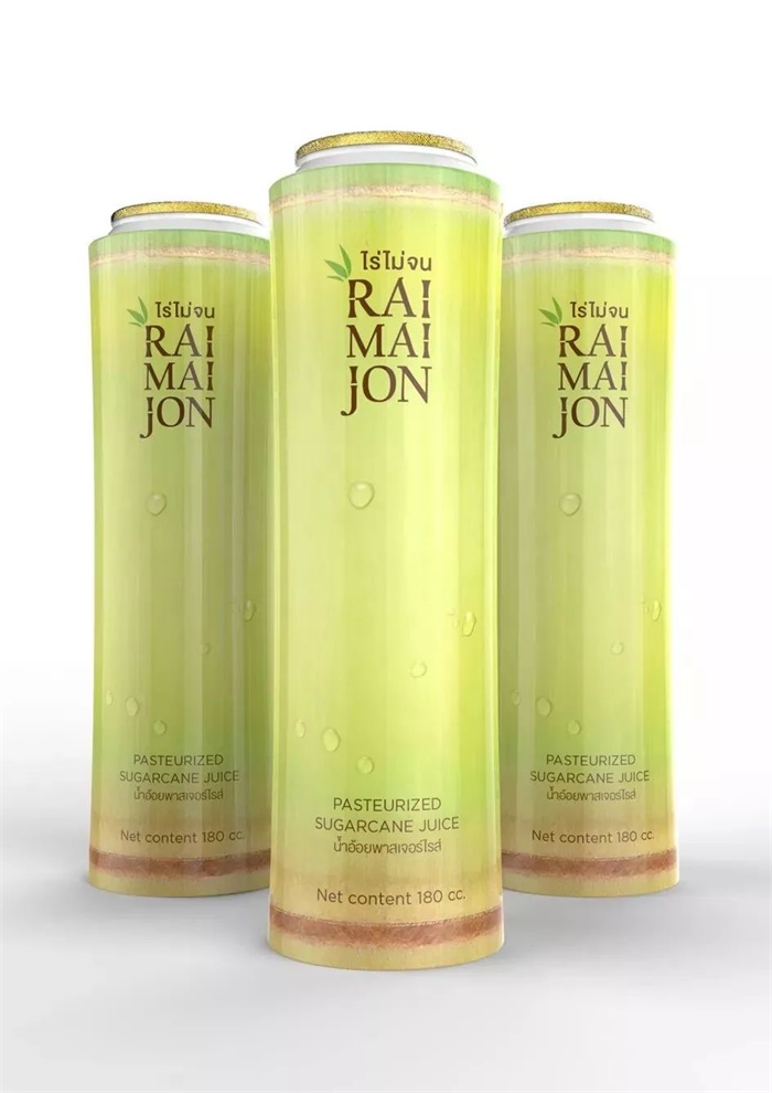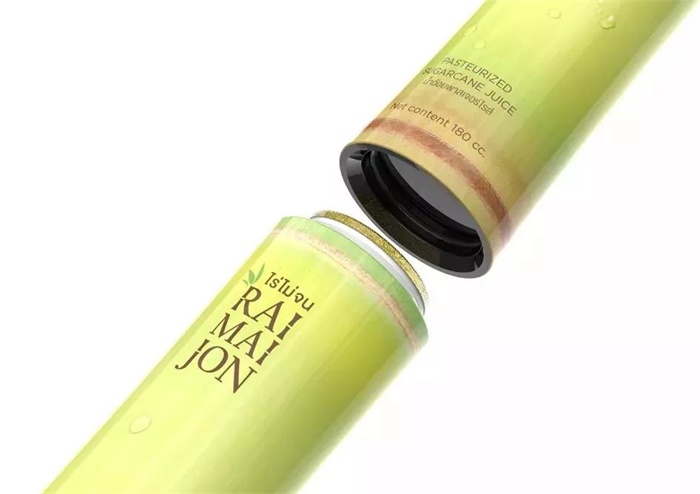 RAIMAIJON SUGAR CANE JUICE是泰國的一個甘蔗汁品牌,設計公司Prompt Design為其設計這種包裝是為了給甘蔗汁愛好者一個全新的體驗,包裝設計模擬了甘蔗的外觀、感覺和質地,瓶子的形狀和大小被設計成允許瓶子堆疊在一起,從遠處看,這種設計在貨架上非常與眾不同,而且很容易為顧客所識別,當一個個瓶子堆疊起來的時候就像一片竹林,將甘蔗汁的味道與包裝形象聯合起來,具有一套完整的包裝設計體系,將甘蔗形態的模擬放大到最大化,具有自己的獨特標識。