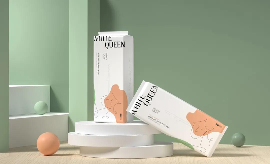 旨在提供安全舒適消費體驗的--White Queen品牌洗臉巾,始終秉承“顏值即正義”的設計理念,希望通過包裝給予消費者一定的幸福感。簡約而不失格調(diào)的外觀包裝,畫面用簡筆線條勾勒了,女性柔美的臉部輪廓,低保和度的純色塊填充豐富插畫層次表現(xiàn)了產(chǎn)品的特性。