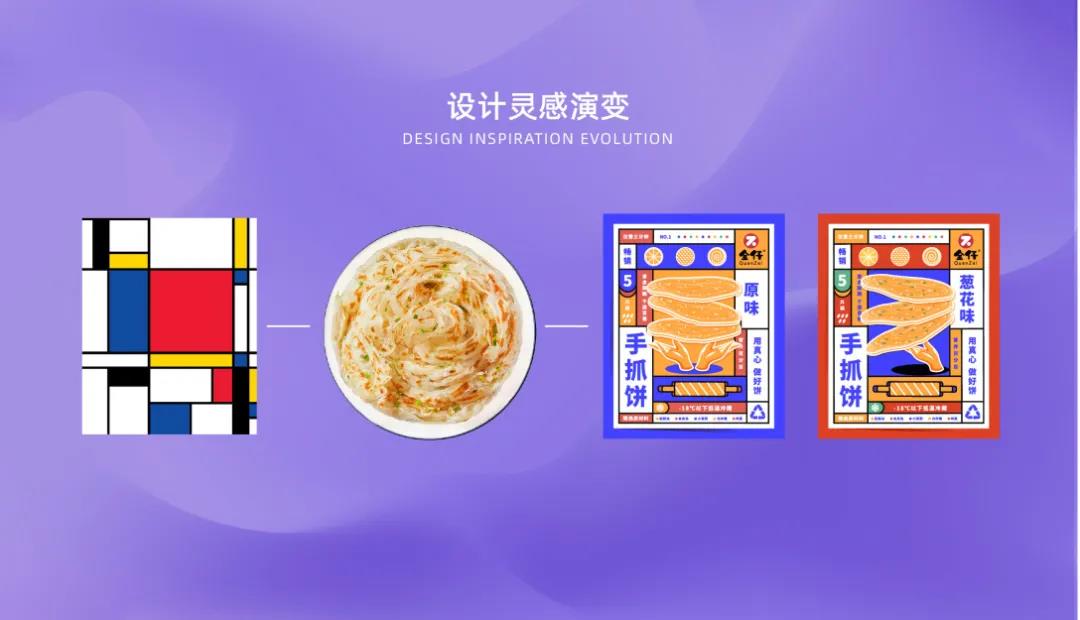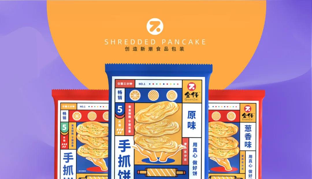 不只是在夜市才見得到的手抓餅包裝,畢竟現在的超市也能看到愈發多的,地方小吃被包裝成零食模樣,顏值上自然要更講究創意和突破了~