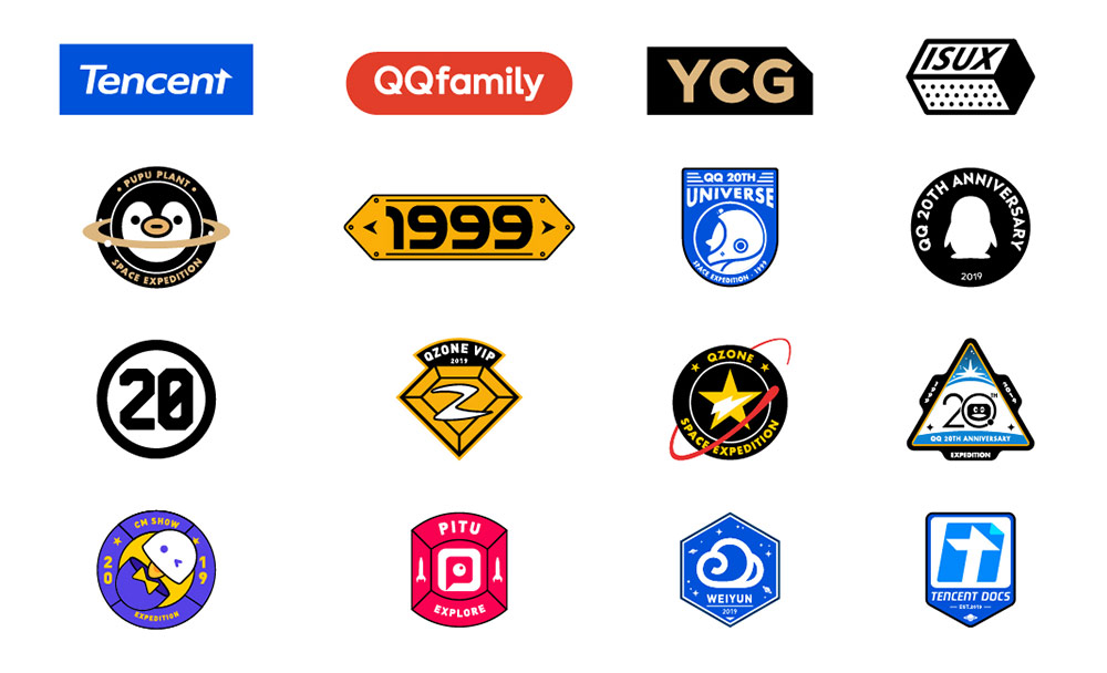 為了能夠和“宇宙探索”這風(fēng)格緊密貼合,設(shè)計(jì)團(tuán)隊(duì)還設(shè)計(jì)了專屬徽章,徽章設(shè)計(jì)沿用了太空的概念,結(jié)合星球,星空,宇航員等科幻元素。簡約的幾何形狀和大膽的配色貼合“QQ更好玩”的年輕潮流氣息。