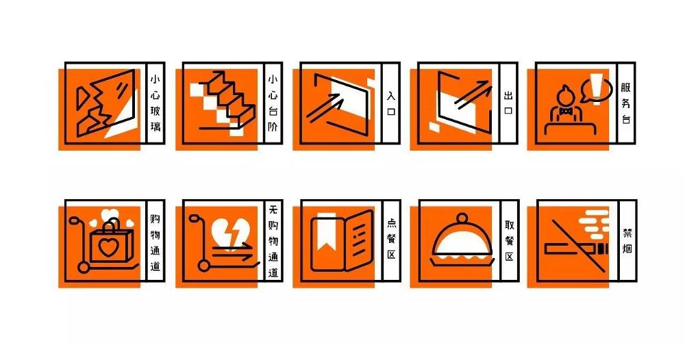 滲透化:店內導視系統以輕量的線條和幾何色塊進行組合設計,通過精簡的圖形語言有傳遞產品信息。