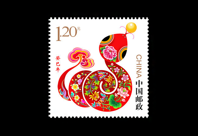 據介紹,《癸巳年》蛇年生肖郵票設計者為清華大學美術學院教授、博士生導師、2011年兔年生肖郵票設計者吳冠英。他表示,生肖郵票作為一種大眾的藝術,需要被人普遍接受,所以在設計中加入了很多民間傳說等中國傳統語言!吧呱碛玫氖羌t色,因為古代講赤蛇是大吉的意思,牡丹頭飾表示富貴,蛇身上代表四季的桃花、荷花、菊花、梅花,表達反復、長久的意思!睂τ谏咂鄙献顬榕c眾不同的珠子,吳冠英解釋說,這顆珠子源于晉代小說《搜神記》里蛇銜明珠以報恩的故事。