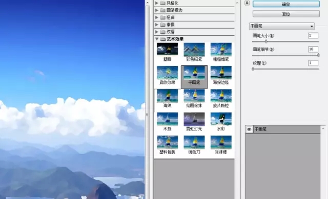 3.然后在這個圖層的基礎上添加濾鏡-濾鏡庫-干畫筆效果