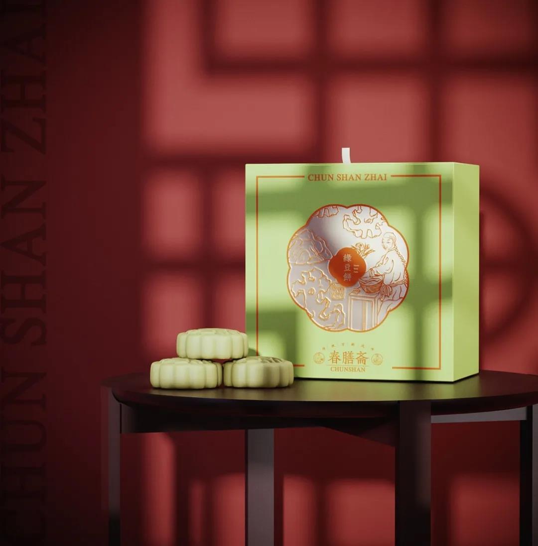 “首飾盒”系列:草綠色的外盒,以傳統花窗的形式展現燙印工藝,立體線條勾勒了相關的制作和購買場景,首飾盒式的設計更具美感。