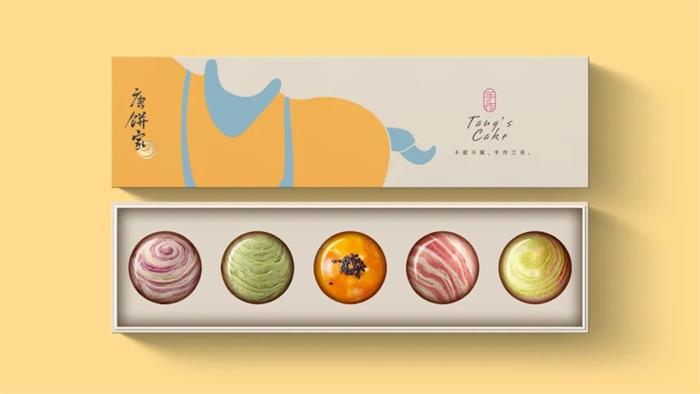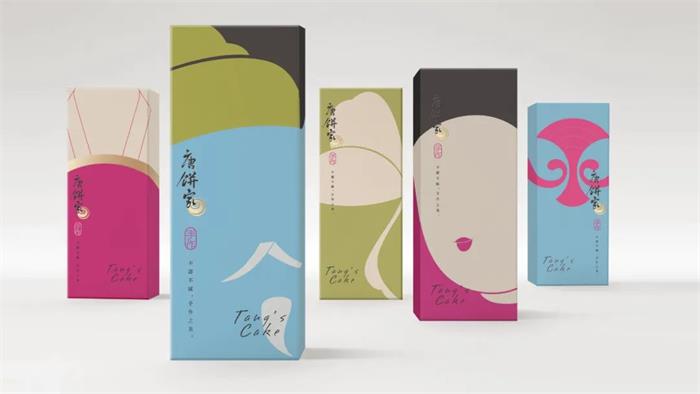 于2002年創(chuàng)立的唐餅家中式糕點(diǎn)品牌,這次的包裝形象升級(jí)以簡(jiǎn)潔的設(shè)計(jì)手法和國(guó)潮風(fēng)格,結(jié)合唐朝代表性的宮廷或官家元素,演繹了全新的唐朝韻味。首先包裝以唐朝畫(huà)作重現(xiàn)精致唐風(fēng),帝后組合作為品牌核心形象,結(jié)合唐朝文化藝術(shù)中的三彩馬、三彩駱駝及唐朝經(jīng)典建筑設(shè)計(jì)。另外通過(guò)扁平化色彩,抽象線條的畫(huà)面勾勒,巧妙展示了產(chǎn)品特有的外觀形象。整體波普化的呈現(xiàn)形式,契合品牌調(diào)性的同時(shí),系列的視覺(jué)效果增添了幾分美感。而另一個(gè)版本的獨(dú)立包裝,莫蘭迪色調(diào)背景下以抽象化呈現(xiàn)了食品本身的外觀,激發(fā)消費(fèi)者的味覺(jué)聯(lián)想。