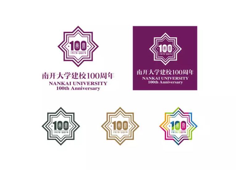 設計理念:南開大學百年校慶LOGO的主體由阿拉伯數(shù)字“100”、百年紀年及八角星形的三重組合這三部分共同組成。其中數(shù)字“100”的兩個“0”內分別嵌入了南開大學校徽中“南”、“開”兩個字的篆體字樣,并在下方輔以紀年“1919-2019”,寓意滄桑歷史,世代銘記,百年南開,繼往開來。