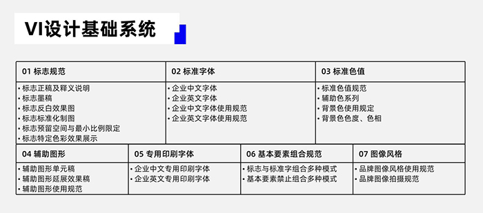 基礎系統包含:標識設計、標準色彩、標準字體、輔助圖形、視覺圖像等,這些是一個品牌從0-1建設重要的組成部分!